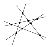 სიბრტყეზე 5 წრფეზე განალაგე ათი წერტილი ისე რომ თითოეულ წრფეზე იყოს ოთხი წერტილი.